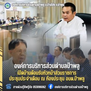🗓 ​วันที่ 1 เมษายน 2569 เวลา 15.00 น. นายฤทธิ์ ตาโล๊ะ นายกองค์การบริหารส่วนตำบลป่าพลู ให้การต้อนรับคณะหัวหน้าส่วนราชการ ในการประชุมหัวหน้าส่วนราชการและหัวหน้าหน่วยงานที่เกี่ยวข้องประจำอำเภอบ้านโฮ่ง ประจำเดือนเมษายน 2569 ครั้งที่ 4/2569 ณ ห้องประชุมองค์การบริหารส่วนตำบลป่าพลู อำเภอบ้านโฮ่ง จังหวัดลำพูน โดยมีนายจรัล มณีจันสุข นายอำเภอบ้านโฮ่ง เป็นประธานในพิธี
